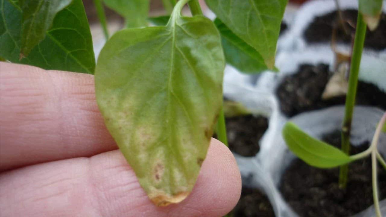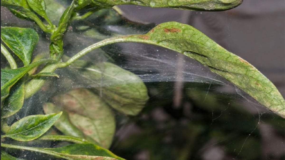 Определить наличие паутинного клеща на рассаде перца можно по небольшим светлым пятнышкам, которые появляются по краям листьев. Со временем эти точки могут охватывать всю поверхность листа. При значительном размножении вредителя на верхушках растений образуется тонкая паутинка.