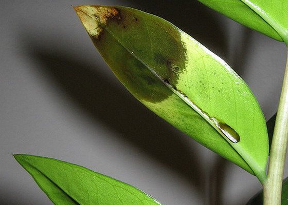 Замиокулькас предпочитает хорошо освещенное место без сквозняков и ветра, с низкой влажностью воздуха. При неправильном расположении происходит следующее: