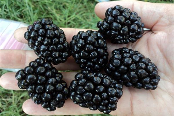 Рассматривая фото ежевики Арапахо, мы видим блестящие, черные плоды. Самые крупные достигают веса 10 г, но в основном их вес – 5-6 г. Семена мелкие. Ягода правильной формы, плотная, хорошо транспортируется. Вкус сладкий нежный.