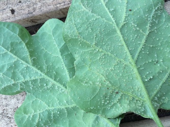 Микроскопические насекомые под названием тля часто покрывают листья баклажана. Их колонии могут располагаться на нижних участках листвы и побегах. Тля способна проколоть кожицу листиков, высосать сок и покрыть культуру испражнениями клейкой консистенции.