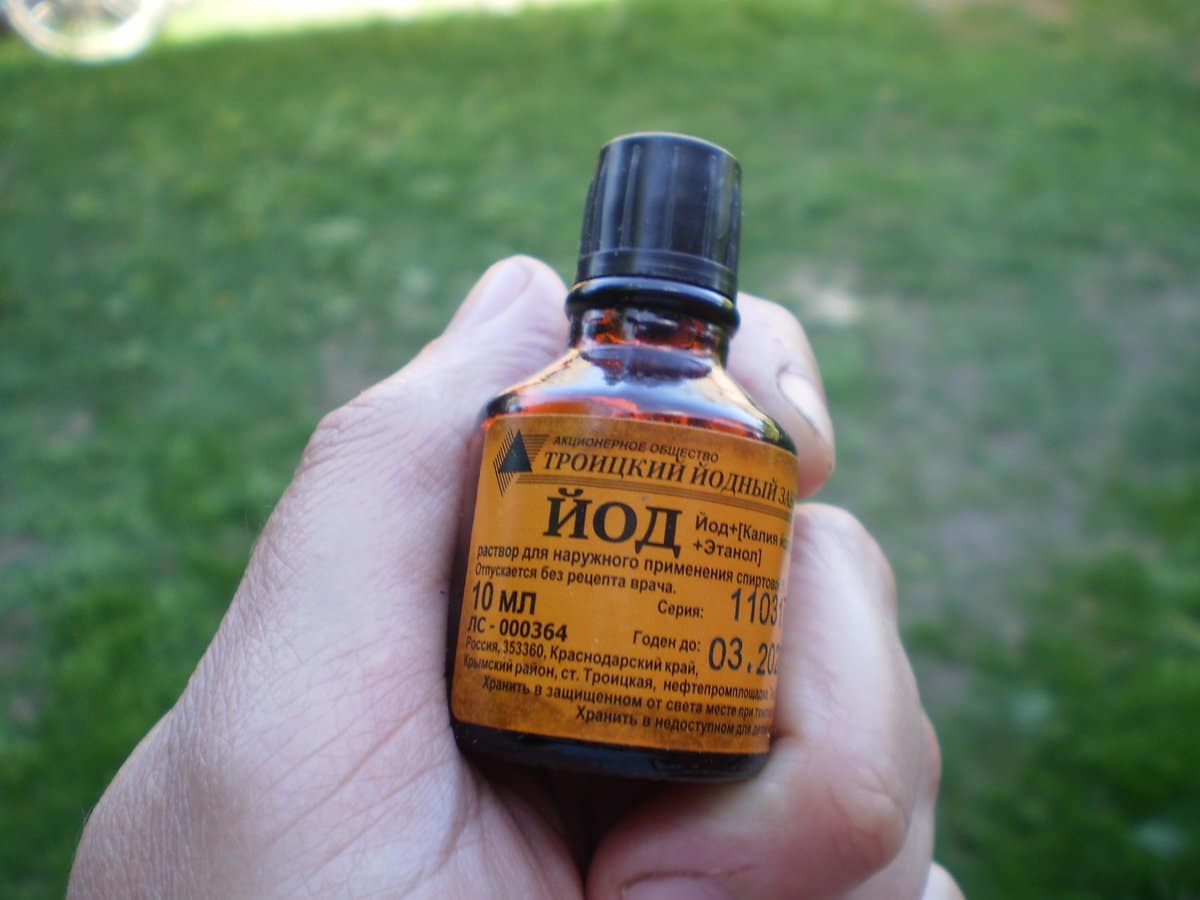 Для приготовления раствора с йодом необходимо развести 40 капель вещества в 10 литрах воды. Опытные садоводы советуют проводить полив йодом дважды за сезон. Первый раз это следует делать через две недели после высадки растений, а второй – в начале формирования соцветий.