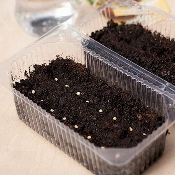 За сутки до посева семян желательно наполнить тару субстратом. Для этого подойдут торфяные горшочки, ящики или контейнеры. После этого емкость следует пролить кипятком. Это поможет добиться дезинфекции грунта. Однако увлажнять субстрат стоит умеренно, чтобы семена могли дышать.