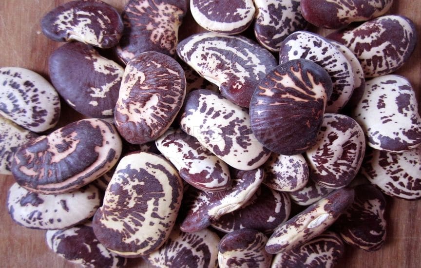 - из созревшего плода выпадает 30-60 семян пёстрой расцветки;