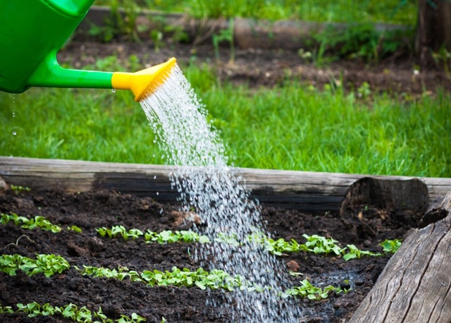 Важно! При поливе грядок важно надевать на лейку распылитель. Это помогает равномерно распределить воду по площади насаждений и избежать вымывания семян из почвы.