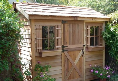 Сарай снаружи можно обшить досками по принципу кирпичной кладки, закрывая щель между двумя досками третьей. Шифером стенки оббиваются тем же способом, который применяется при накрывании крыши. Кроме этого сарай можно обшить досками снизу. Повыше ставятся листы шифера, а затем набиваются лесоматериалы.