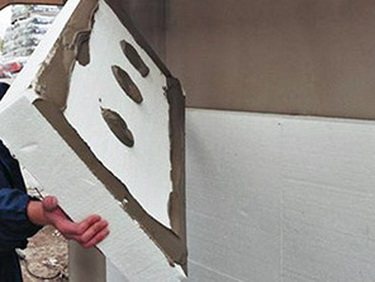 Плиты утеплителя крепят к поверхности на специальные клеевые составы. Затем с помощью того же клея монтируется армирующая стекловолоконная сетка (утапливается в состав). Поверх армирующего слоя производят оштукатуривание и побелку известью.