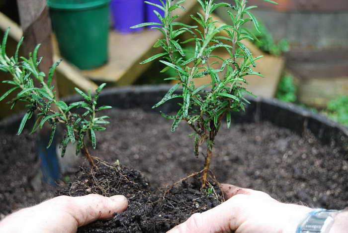 Перед тем как посадить розмарин, с нижней части черенка стоит оборвать все листья и обработать срез стимулятором роста корней. Высаживать черенки на укоренение следует в контейнер, наполненный рыхлым и легким грунтом. Он должен полноценно пропускать воду и воздух. Вначале почву следует простерилизовать. Для укоренения культуры подойдет состав на основе торфа и вермикулита. Затем черенки нужно убрать в теплое место. Оно должно иметь защиту от прямых лучей солнца.