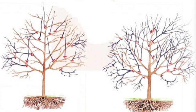 Схема обрезки молодого дерева