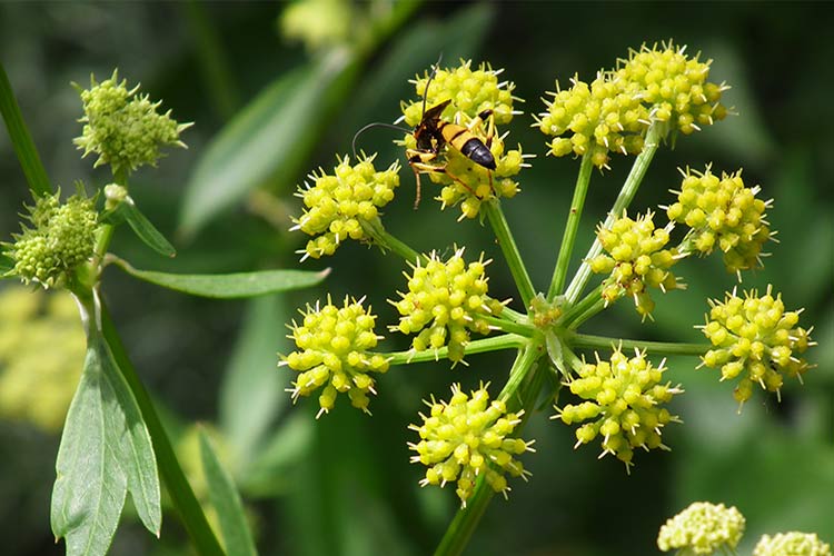 - Оптимальное время сбора листьев — до того, как на кусте начнут появляться зонтики желтого цвета, что говорит о начале цветения любистка. Если собирать листву раньше, она не успеет напитаться целебными компонентами и польза от такого сбора будет минимальной.
