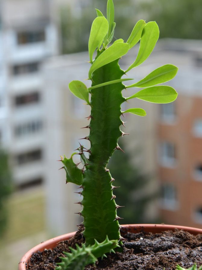 Этот суккулент очень любит свет, но летом и весной к ярким солнечным лучам его стоит приучать постепенно, чтобы не было ожогов. Лучше всего молочай чувствует себя на подоконниках окон южного и юго-восточного направления. Зимой цветку может понадобиться дополнительная подсветка светодиодными или люминесцентными лампами. - Обрезка.