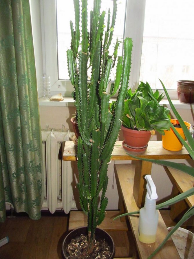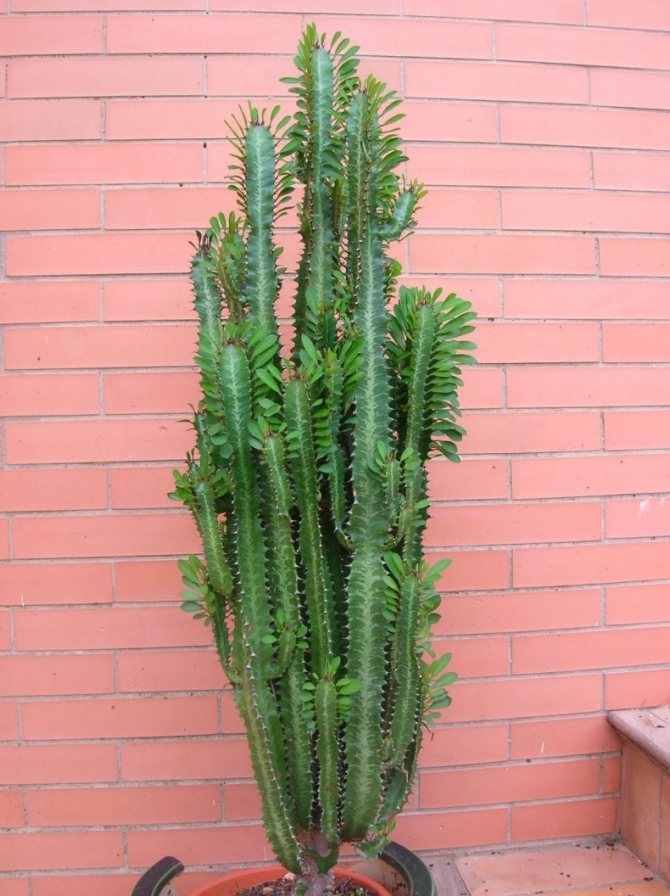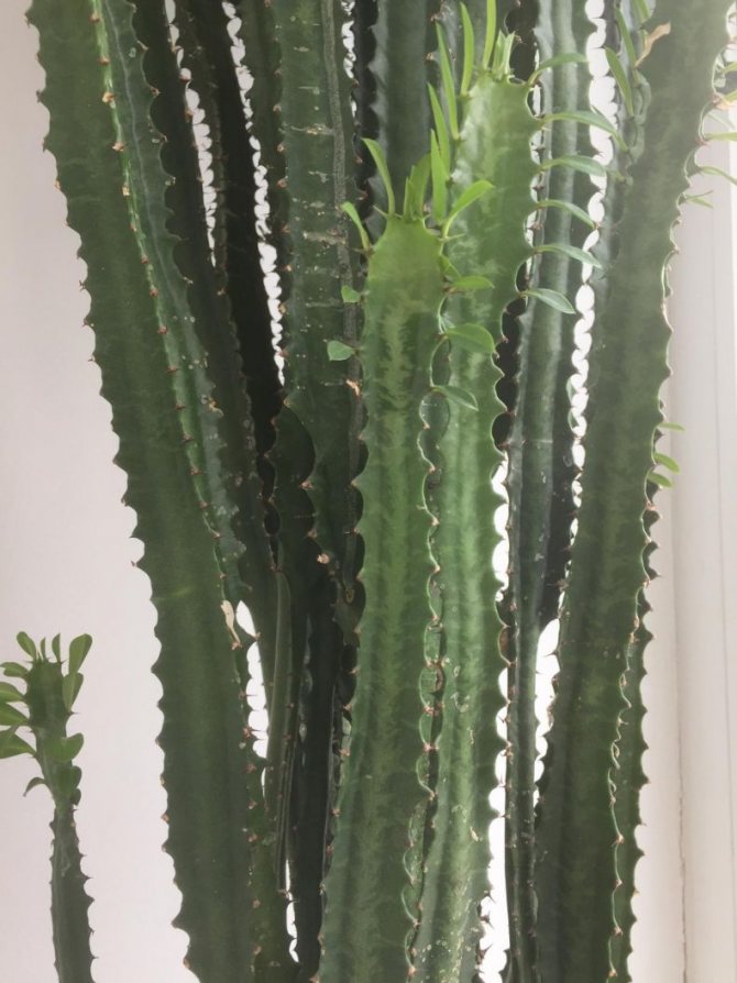 Молочай, который практически все начинающие или неопытные цветоводы принимают за кактус. И их довольно сложно бывает переубедить: ведь это растение действительно куда больше похоже на величественный кактус, чем на привычный нам комнатный молочай.