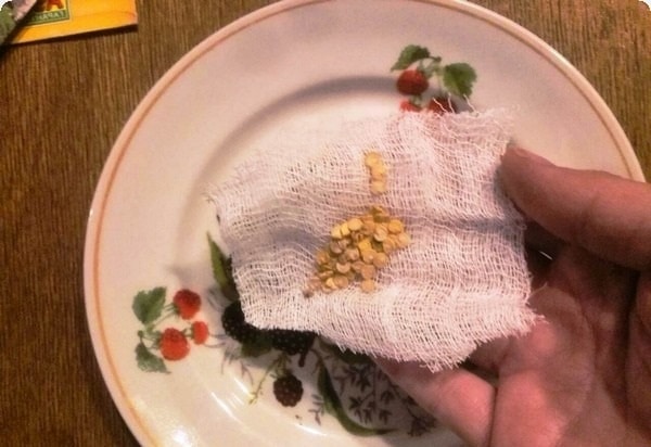- После этого промойте семена и заверните их во влажную марлю для проращивания.