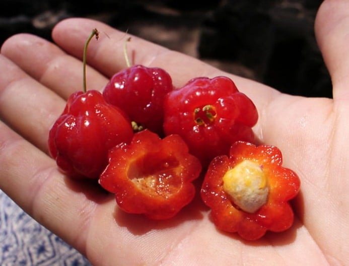 Польза для здоровья: Помимо высокого содержания витамина C, барбадосская вишня богата антиоксидантами, такими как каротиноиды и полифенолы. Эти вещества помогают бороться с окислительным стрессом, поддерживают иммунную систему и могут способствовать улучшению состояния кожи. Плоды также содержат витамины A, B и минералы, такие как железо и кальций, что делает их полезными для общего здоровья.