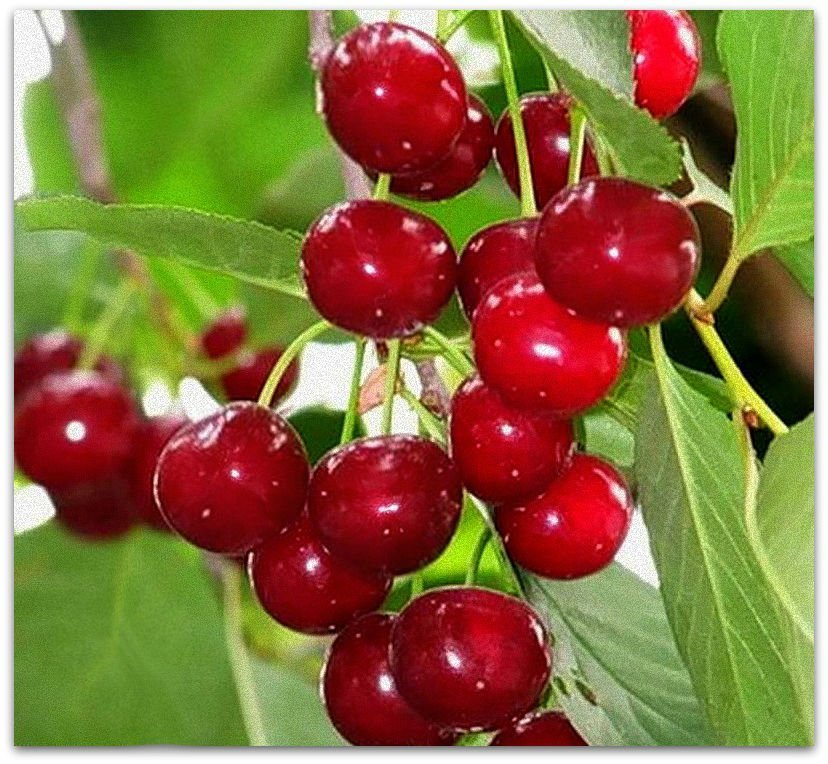 Урожай хороший и большой — до 5 гр может весить одна вишенка. Внешне ягоды круглые, красного и бардового оттенка. Обладают нежным вкусом.