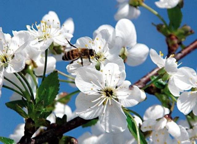 Цветочные почки располагаются на приросте прошлого года и букетных веточках. Они собраны по 3, в конце весны образуют крупные цветки с белыми лепестками.