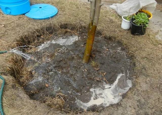 - Яму полностью заливают водой. К посадке приступают только тогда, когда жидкость полностью впитается.