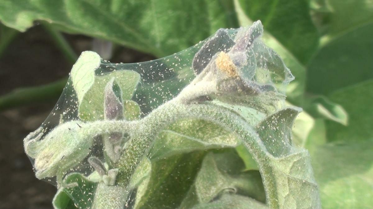 Обращайте внимание на небольшие белые пятна на верхней стороне листьев, где питаются клещи. Паутина может образовываться в локальных очагах с высокой популяцией. Белокрылка. Медвяная роса и сажистый налёт на листьях и плодах указывают на очаги тли или белокрылки.