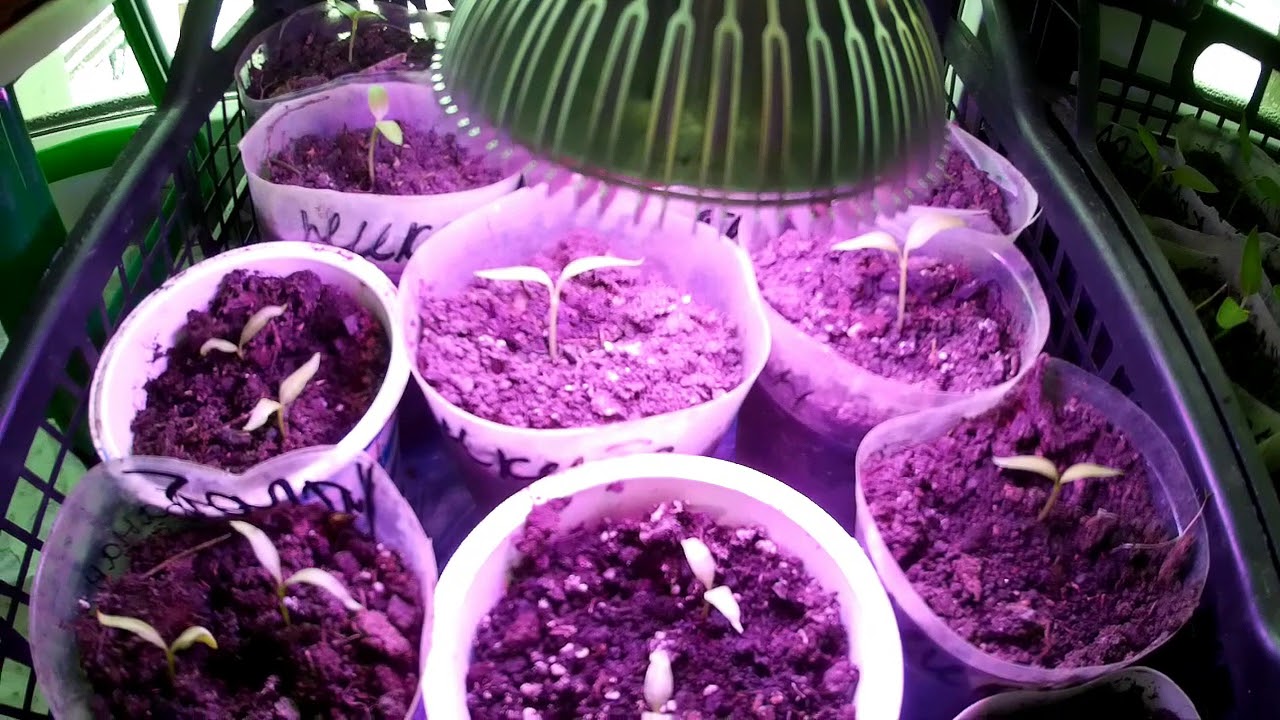 Рассаде нужны минимум 12, а лучше и все 14 часов равномерного дневного света. Сделать это легко благодаря фитолампам. Их устанавливают над горшками, чтобы ростки росли равномерно и не вытягивались.