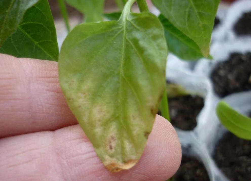 Рассада в теплице чаще всего желтеет от солнечных ожогов. Лучи солнца, проходя сквозь стекло или пленку, оставляют ожоги на чувствительной зелени перца. Также в теплицах часто низкая влажность воздуха.