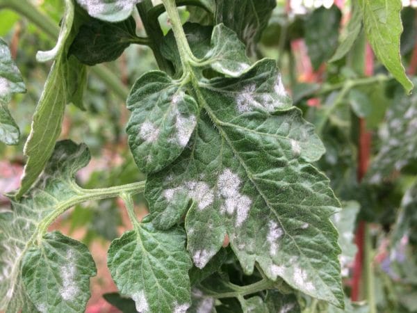 Белые пятна на листьях рассады часто появляются из-за воздействия росы. Их легко заметить: на нижних листьях растения образуется белый налет. Грибковая инфекция распространяется снизу вверх, что приводит к увяданию растения и, в конечном итоге, к его гибели.