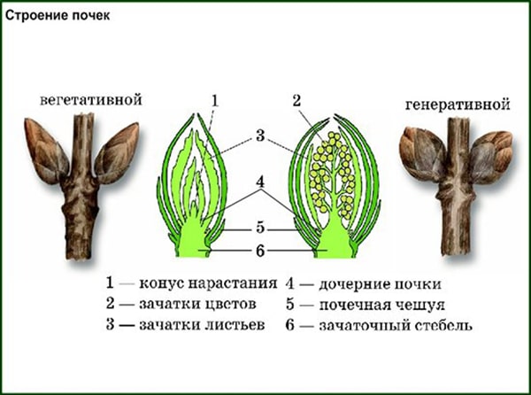 - У вишни Чернокорки, как и у других косточковых, все почки простые и делятся на два типа: они могут быть только генеративными (цветочными) или вегетативными (ростовыми), причем вид можно точно определить после распускания.