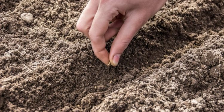 - Смешайте семена моркови с песком в равных пропорциях, посейте их в грунт и присыпьте землей.