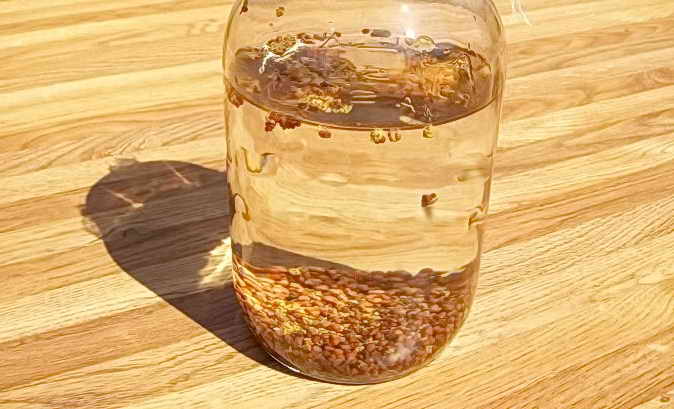 - Поместите семена в стакан или банку с водой. Обратите внимание на те, которые опустятся на дно. Пустые семена будут плавать на поверхности.