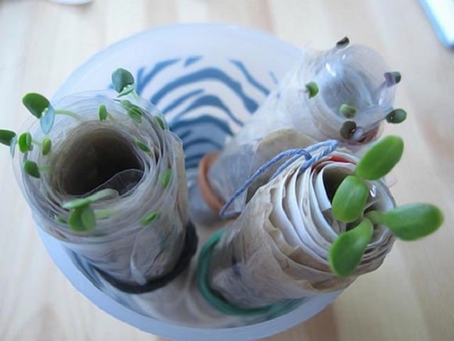 Этот способ идеально подходит для занятых людей, которые могут задержаться с отделением ростков от подстилки. Даже если ростки уже появились, убрать бумажную подложку с сеянца будет достаточно просто.
