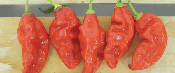 Экстремально-острый естественный гибрид, который в течение некоторого времени считался самым жгучим перцем на Земле. Его плоды морщинисты и неодинаковы по величине — спелые овощи имеют длину от 6 до 9 см.