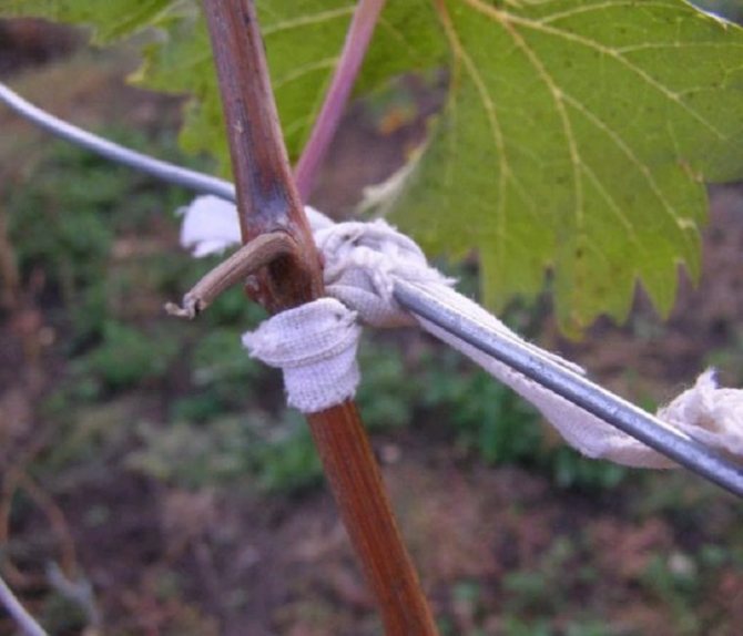 Побеги винограда подвязывают вначале сокодвижения, раньше, чем распустятся почки. Позже подвязывать лозы нежелательно, иначе во время работы обламывается много почек, существенно уменьшая количество вашего урожая.