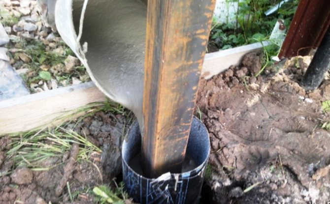 4. Затем выполняется установка. Для этого выкапывают ямы глубиной до 70 см, помещают в них опоры, после чего засыпают щебнем и заливают цементной смесью.