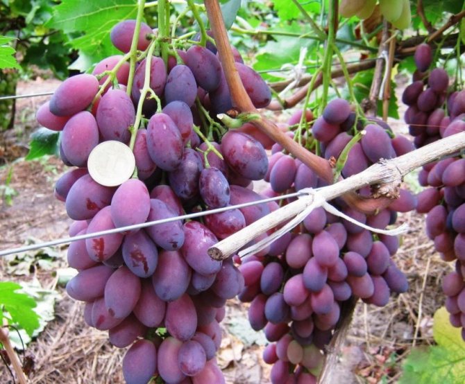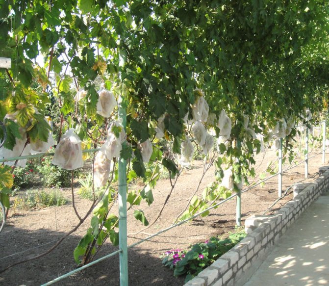 На высоких шпалерах виноград вкуснее и крупнее. Однако в таких условиях разрешается выращивать только устойчивые к морозам сорта (способны выжить при температуре до -32ºС).