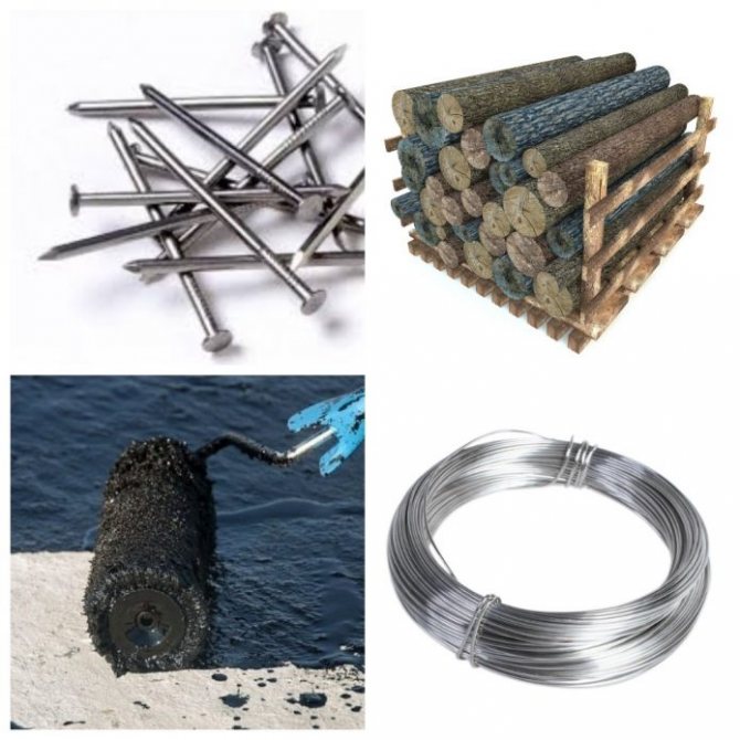 Столбики — основа нашей конструкции, могут быть деревянные или металлические. В первом случае предпочтительнее каштан, ясень, дуб. С поверхности их стволиков снимают кору. Нижнюю часть опор с целью гидроизоляции на 60–80 см обрабатывают смолой.