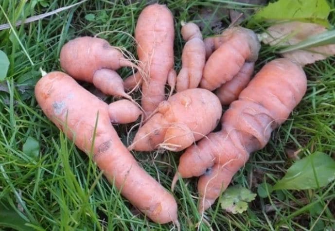 - Деформация. Иногда корнеплоды могут деформироваться, что происходит из-за применения свежего навоза при удобрении.