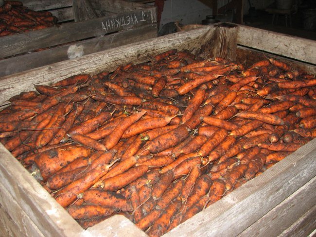 После сбора морковь надо тщательно перебрать и выбросить испорченные овощи. Затем плоды просушивают и помещают в погреб для дальнейшего хранения.