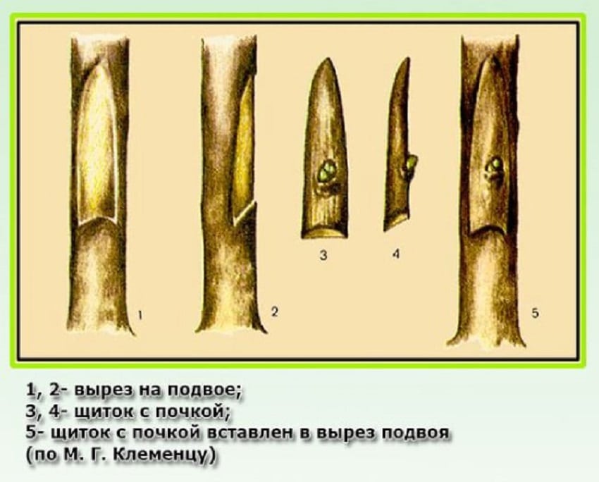 Один из самых простых и востребованных методов прививки — это расщеп. Процесс выполняется по следующему алгоритму: