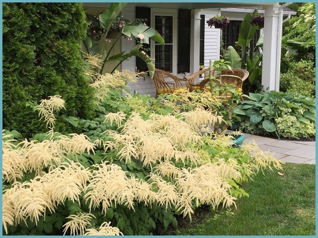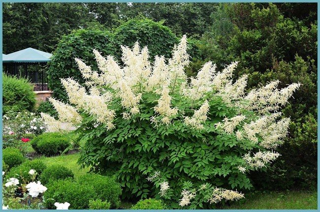 Арункус совершенство красиво смотрится на клумбах, возле прудов.