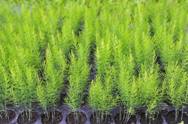 Семена высевают в начале апреля в торфяных таблетках либо проращивают в опилках при температуре 25-27 °C. Всходы появляются на 8-12 день. После появления всходов пророщенные семена высаживают в горшочки объемом 100-200 мл. После угрозы весенних заморозков рассаду спаржи высаживают в открытый грунт.