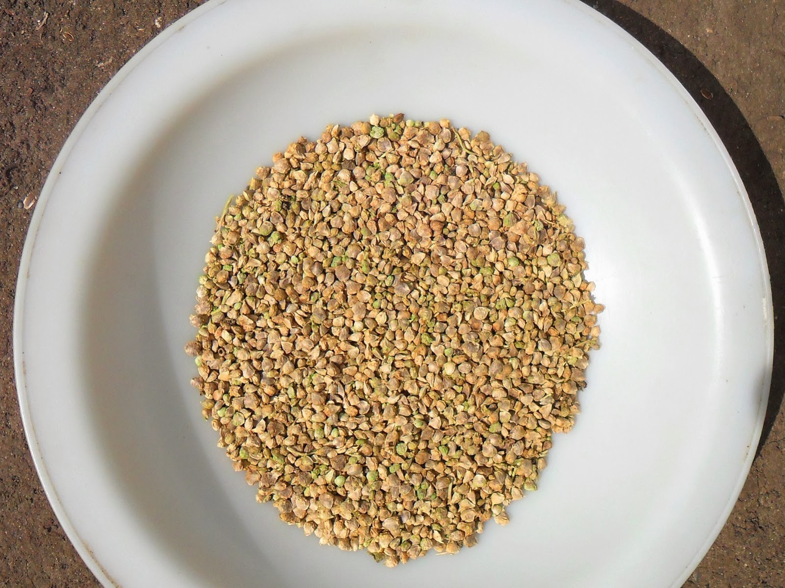 В результате цветения и перекрестного опыления образуются плоды в виде орешков неправильной формы, которые при созревании становятся серовато-бурыми. Внутри каждого плода находится множество мелких семян, сохраняющих всхожесть в течение 3-4 лет.